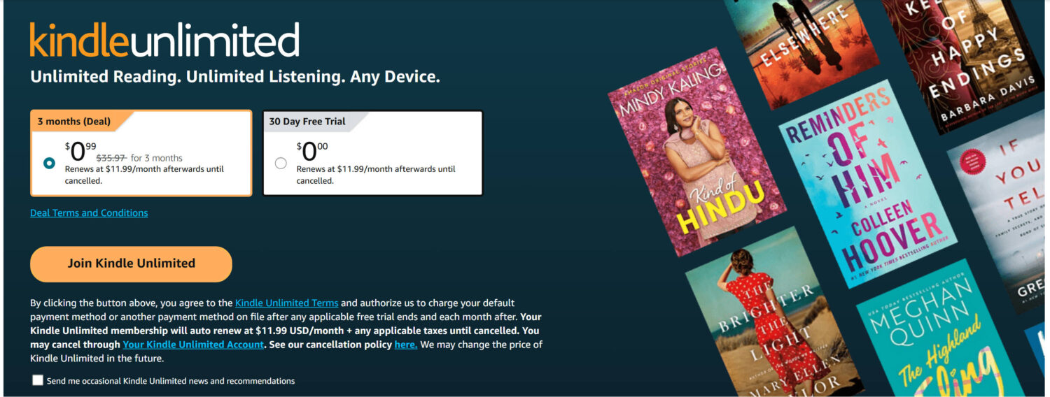 现在通过下方链接注册 Amazon Kindle Unlimited,可享三个月仅 $0.99!之后续费 $11.99/月,记得及时取消订阅。此次优惠无需 Amazon Prime 会员资格,即便之前使用过 Kindle Unlimited 也能成功注册。请在结账页面确认是否免费。 活动链接 ...