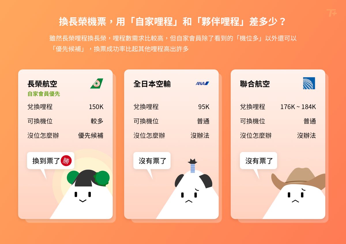 - 各家航空傾向於將哩程機位,保留給自家會員,而比較不會釋出夥伴航空