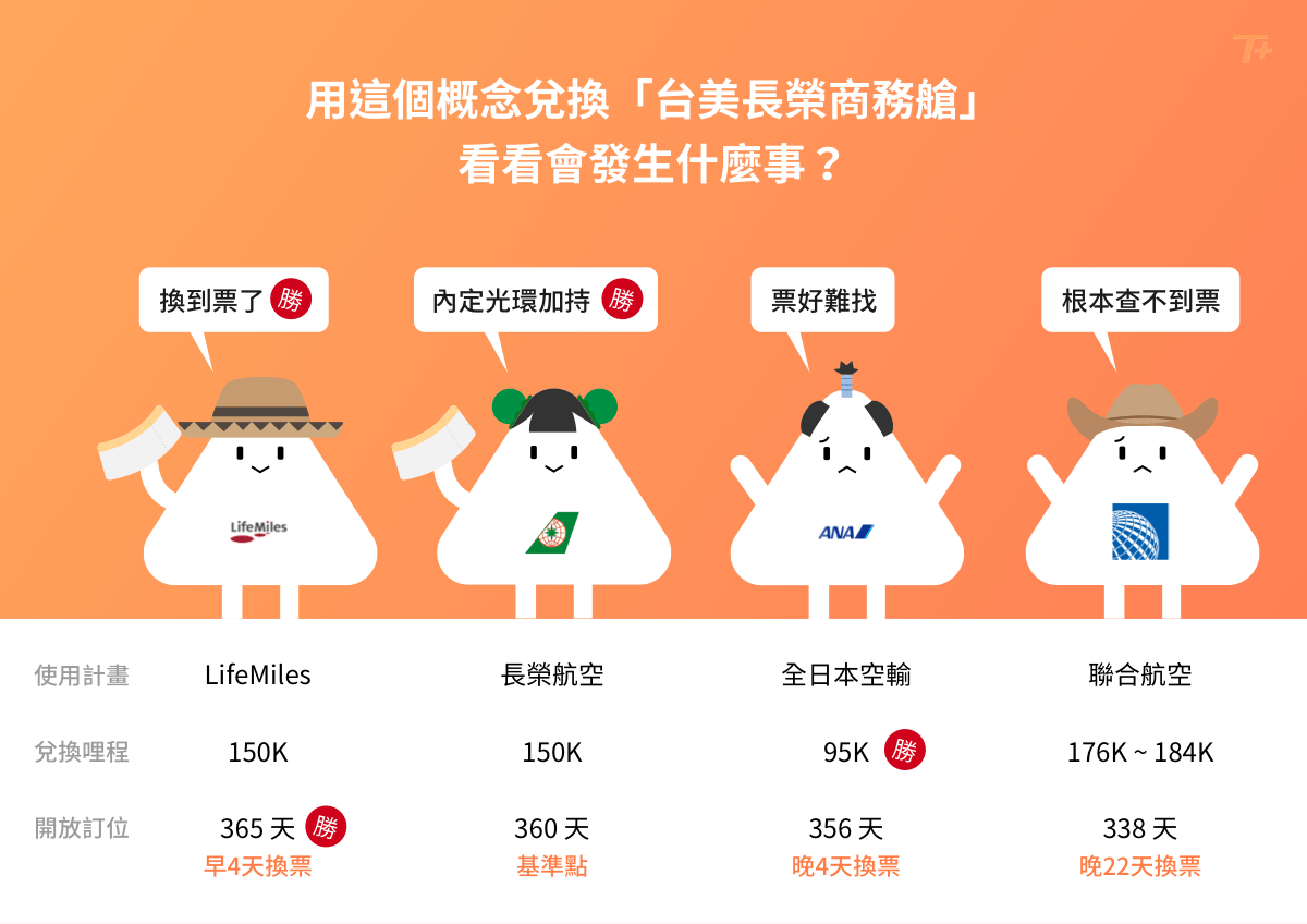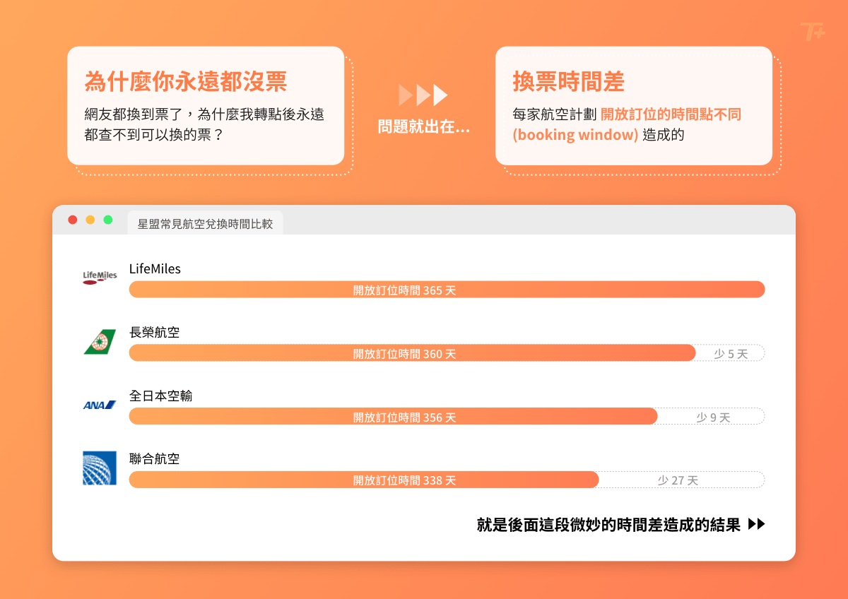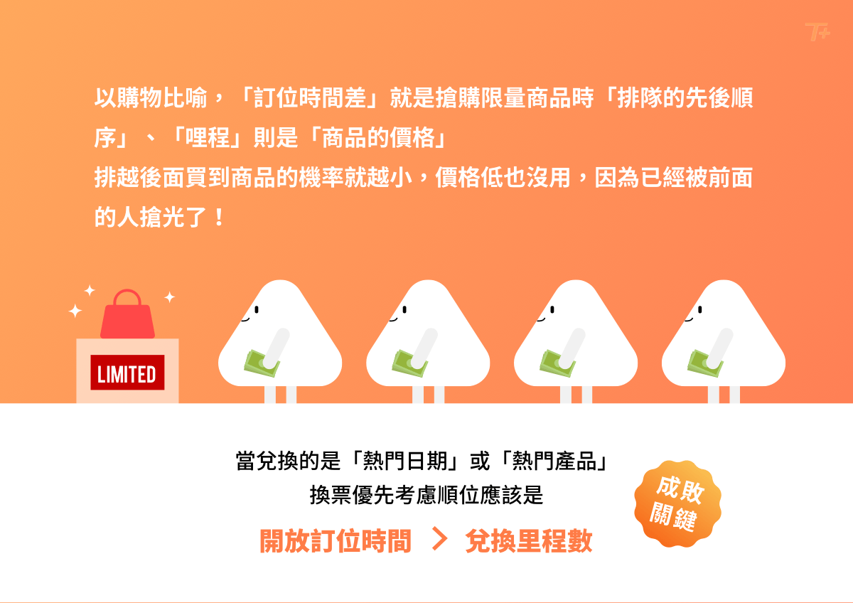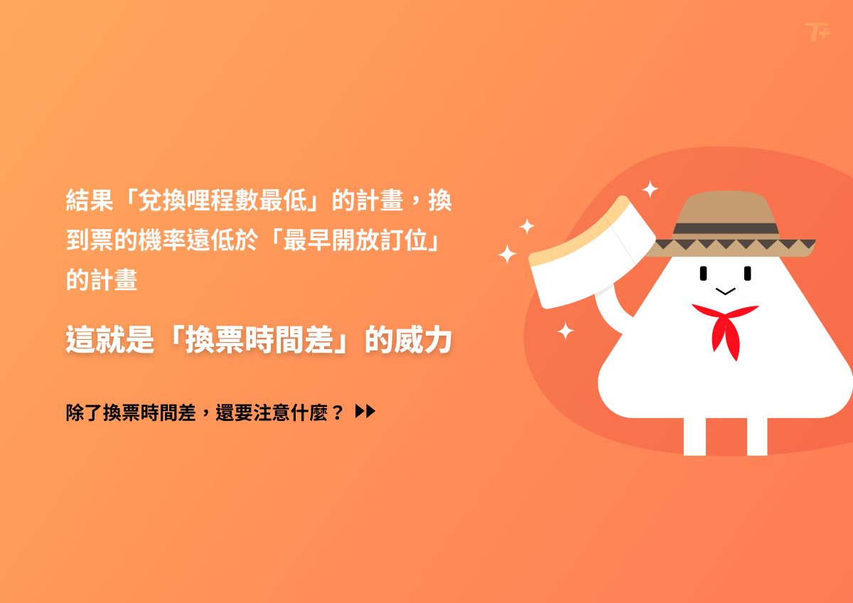 - 各個航空計畫開放兌換機票的時間點都不同,因此會產生「兌換時間差」