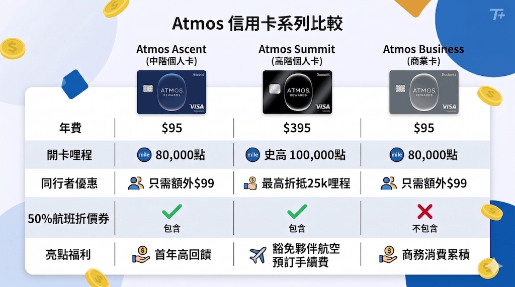 透過這篇所分享的高額開卡禮信用卡選擇,即可將消費支出有效地轉化為實質回饋。無論是把握美國銀行阿拉斯加航空聯名卡的史上最高「三合一」開卡禮優惠,或者利用美國運通的親友個人推薦連結,獲得固定的高額點數開卡禮獎勵,都是聰明的執行策略。特別是這張Atmos Rewards Summit聯名信用卡(點我)高階聯名信用卡,其獨特的「全世界」通用同行者哩程機票兌換券,高額消費哩程回饋,以及豁免夥伴航空兌換手續費等等福利,絕對能夠讓其價值遠超過年費的支出,是一張值得長期持有的優質旅遊神卡。