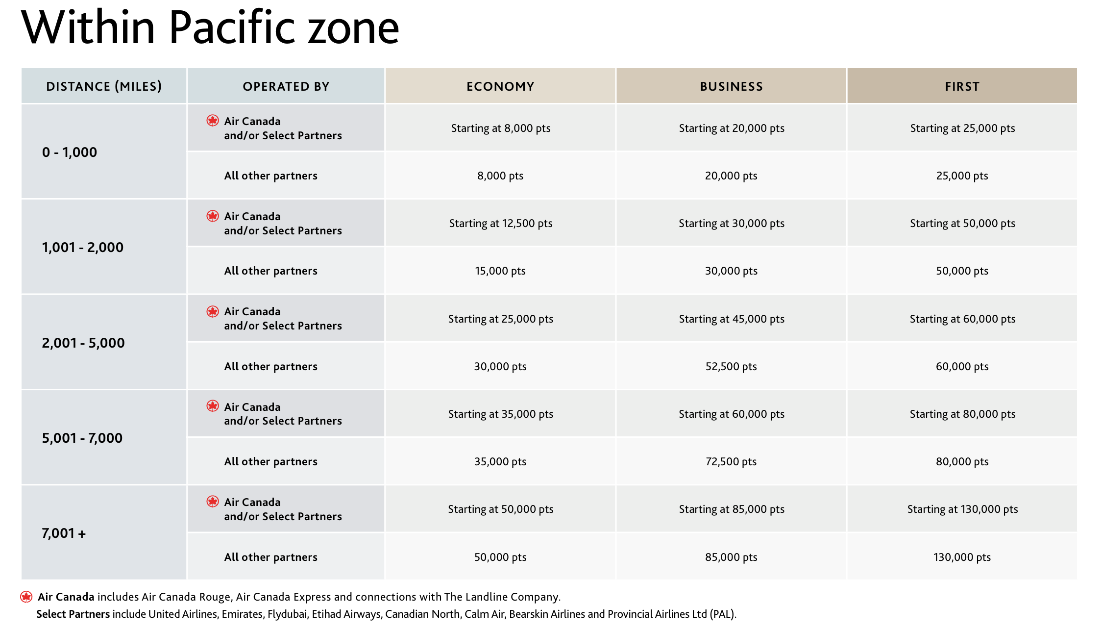 - 大量的加航自家执飞航班不遵守published的表格,很多航班所需的里程堪称天价。既然如此就不应该发布自家的表格。