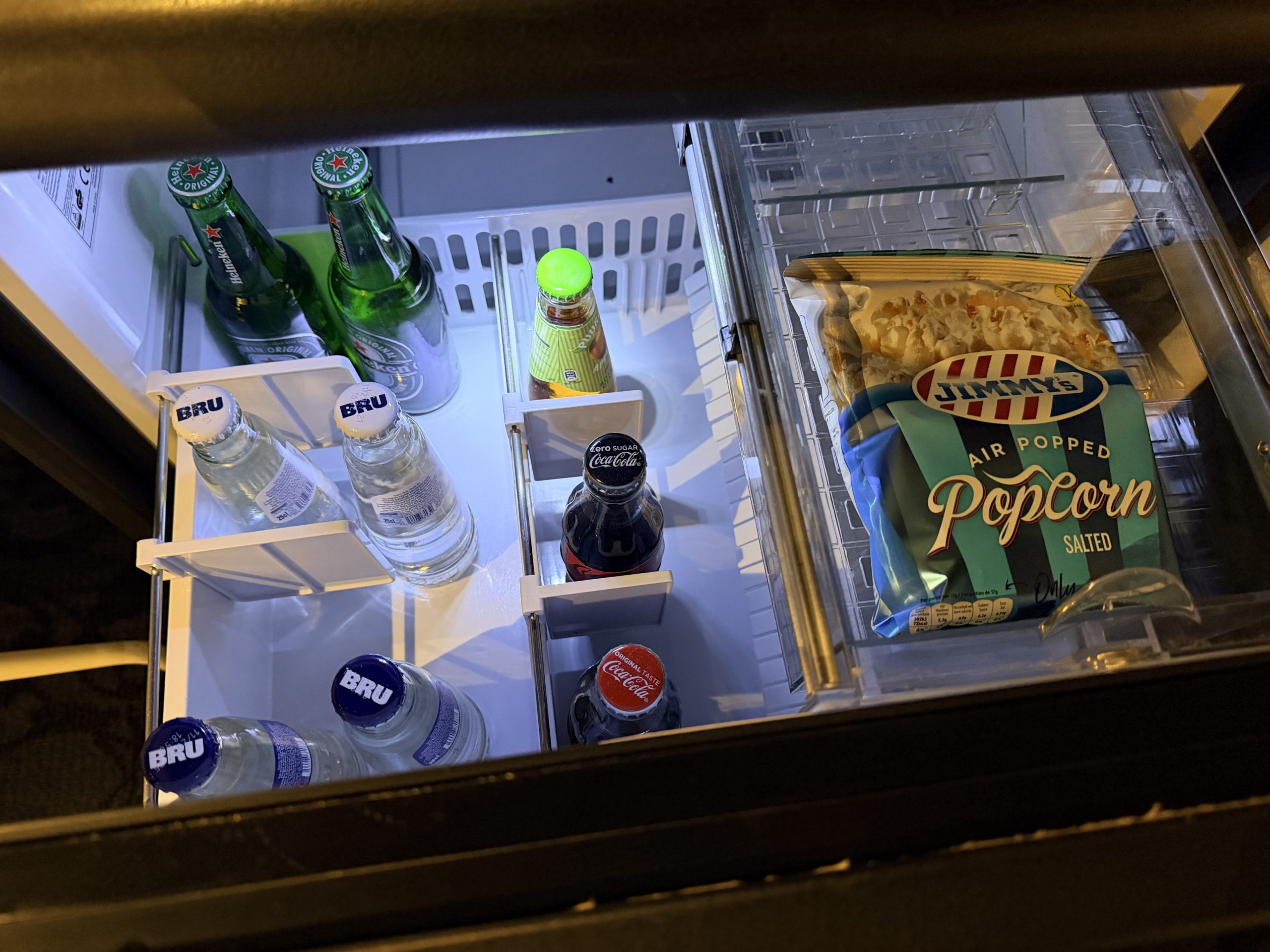 冰箱內的飲料都可以免費取用,點心也是,每天都會補充