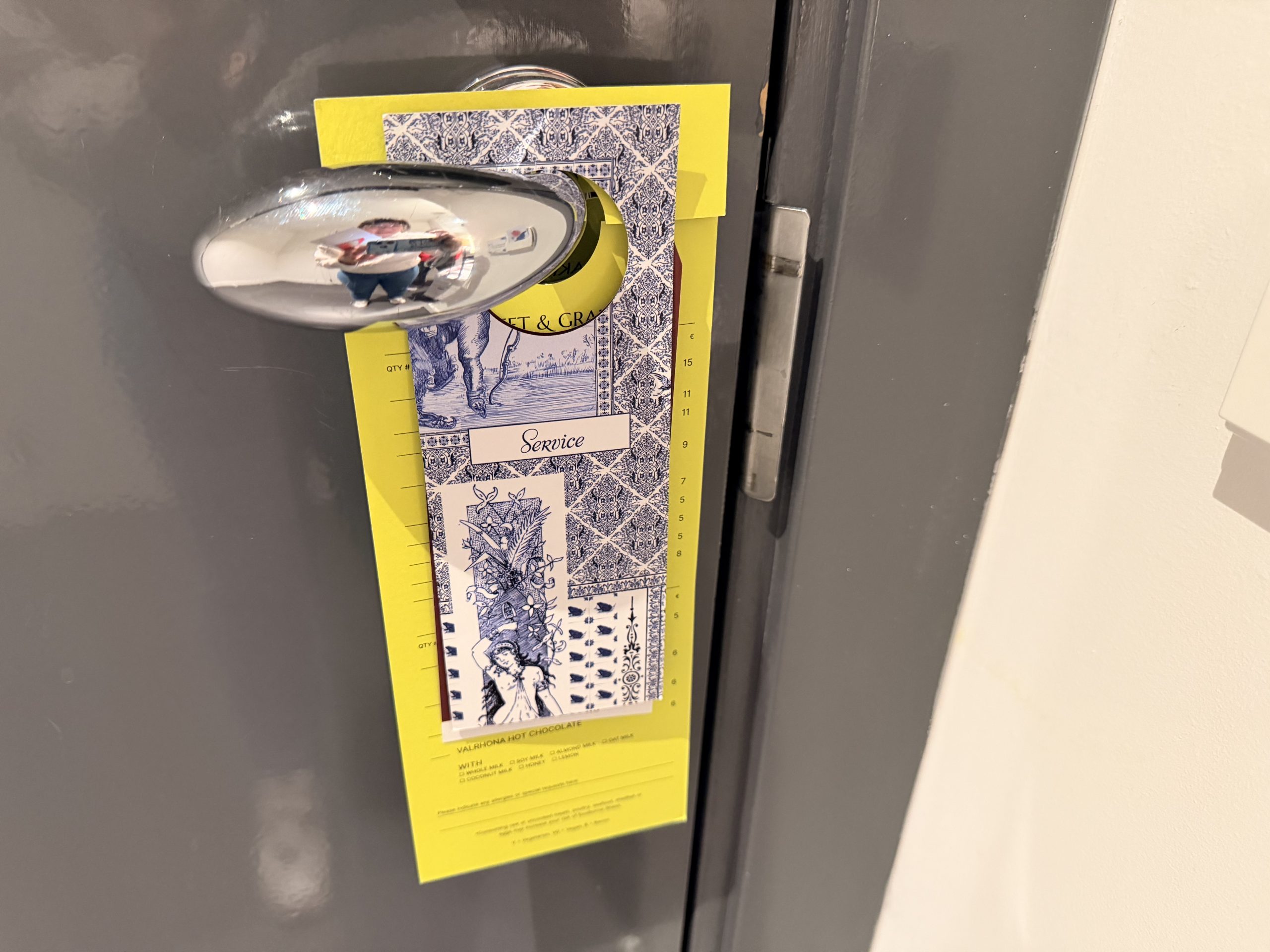 門把上的「請勿打擾」吊牌,也很融入整體酒店設計