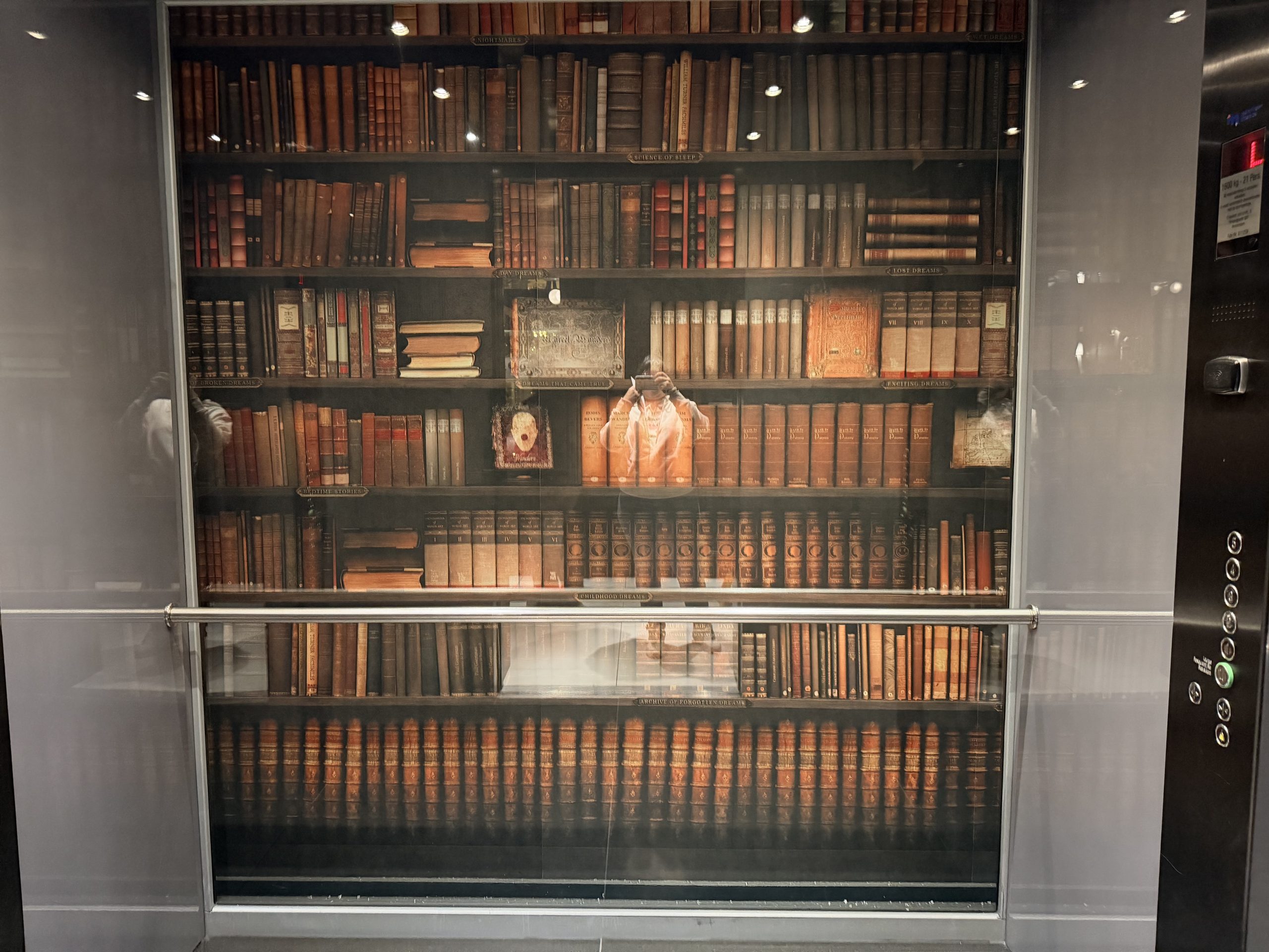 進門後的前廊設計,就像是「綠野仙蹤」的故事當中,愛麗絲剛進入到奇幻世界的時候的走廊,而櫃台位於走廊的側邊。辦理入住手續時,因為我這次的入住分為兩個訂位紀錄,而且預訂的房型還不一樣,剛好碰到酒店客滿的情況,所以服務人員花了一點時間幫忙喬了一下房間的安排。在獲得房卡之後,服務人員就一路送我們到電梯口,非常貼心。酒店的大廳與電梯是一個亮點,透明電梯讓房客可以更好地欣賞整座大廳,隨著電梯緩緩向上,就像是在看一個小故事影片,講述著這座酒店的歷史,非常有趣。