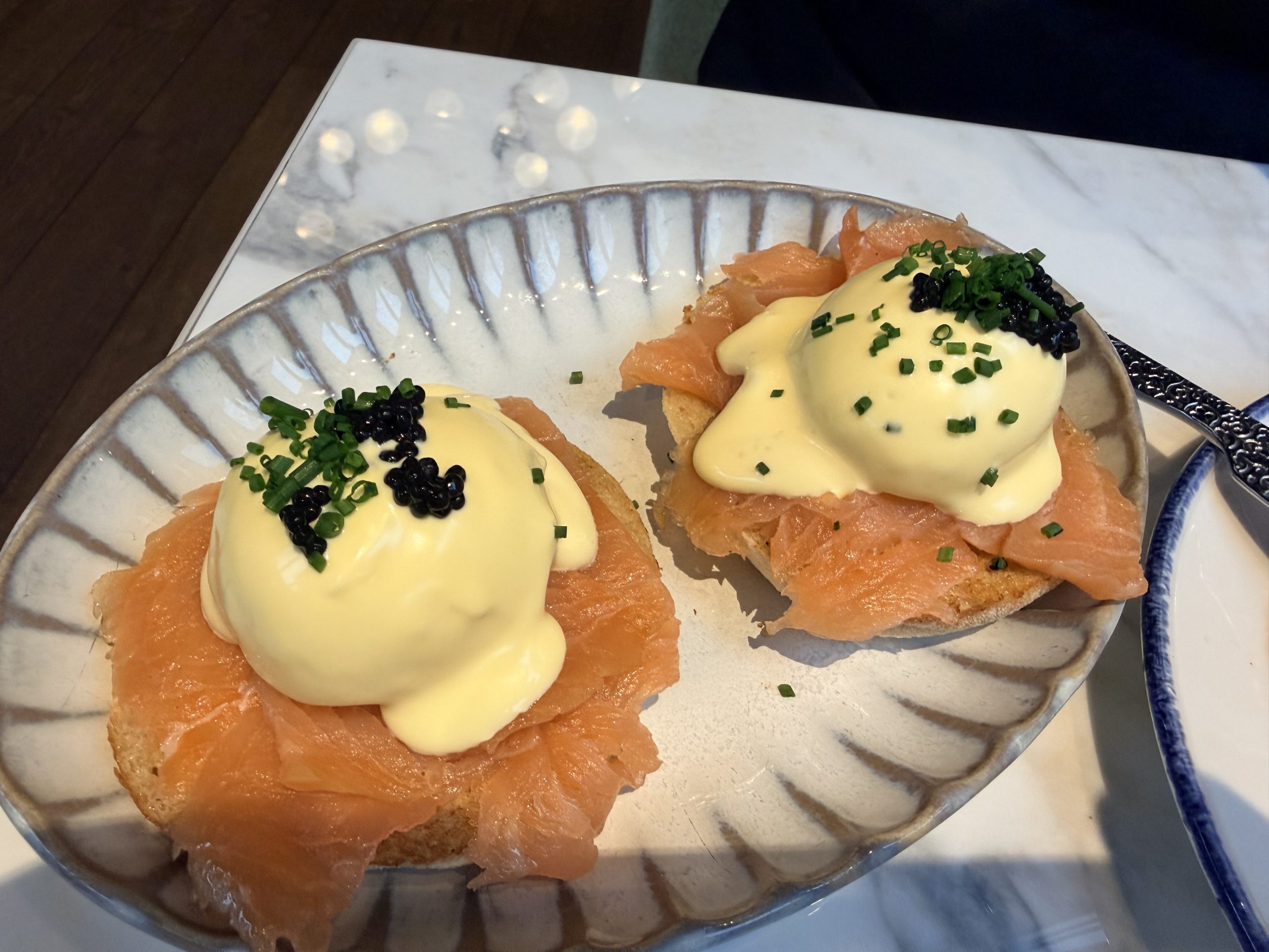 隔天點了有魚子醬的鮭魚班乃迪克蛋